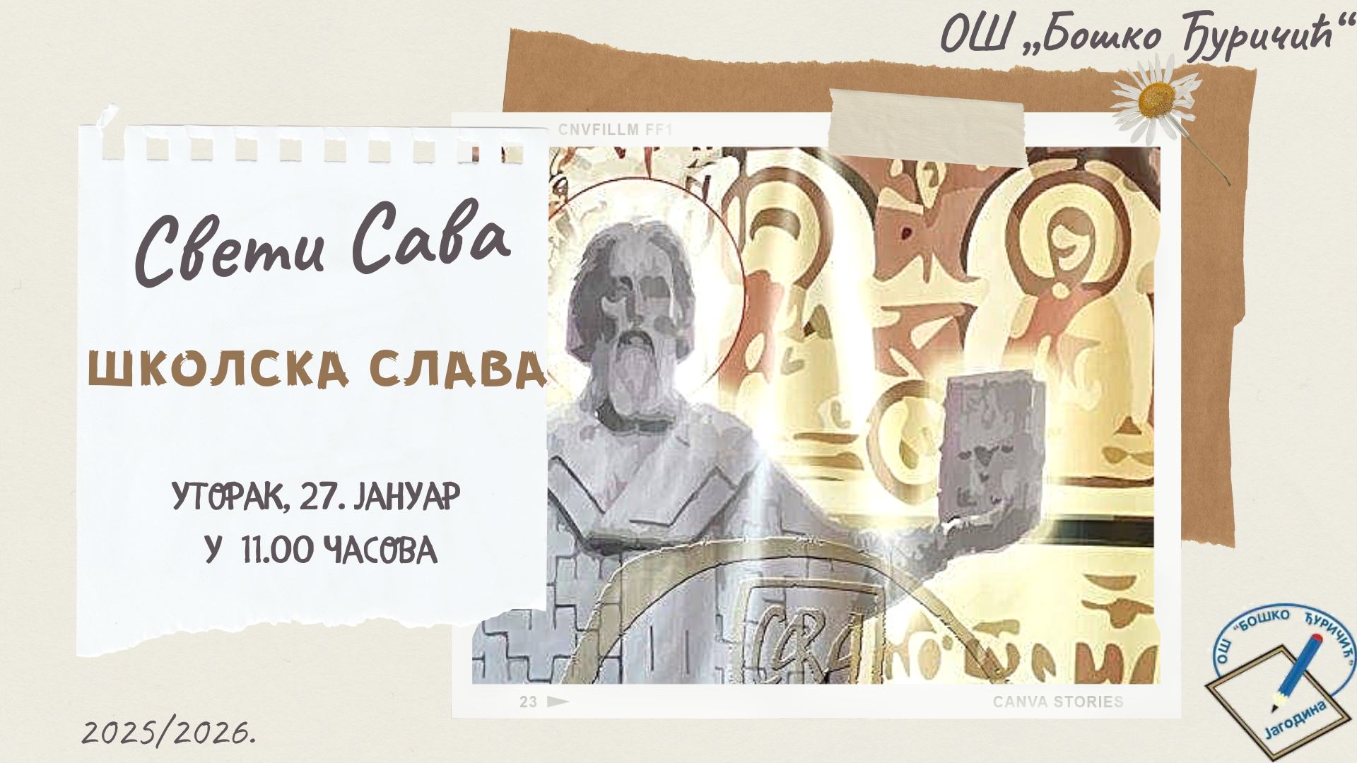 Свети Сава - школска славаДатум: 24. Januar 2026 11:05 Категорија: Novosti